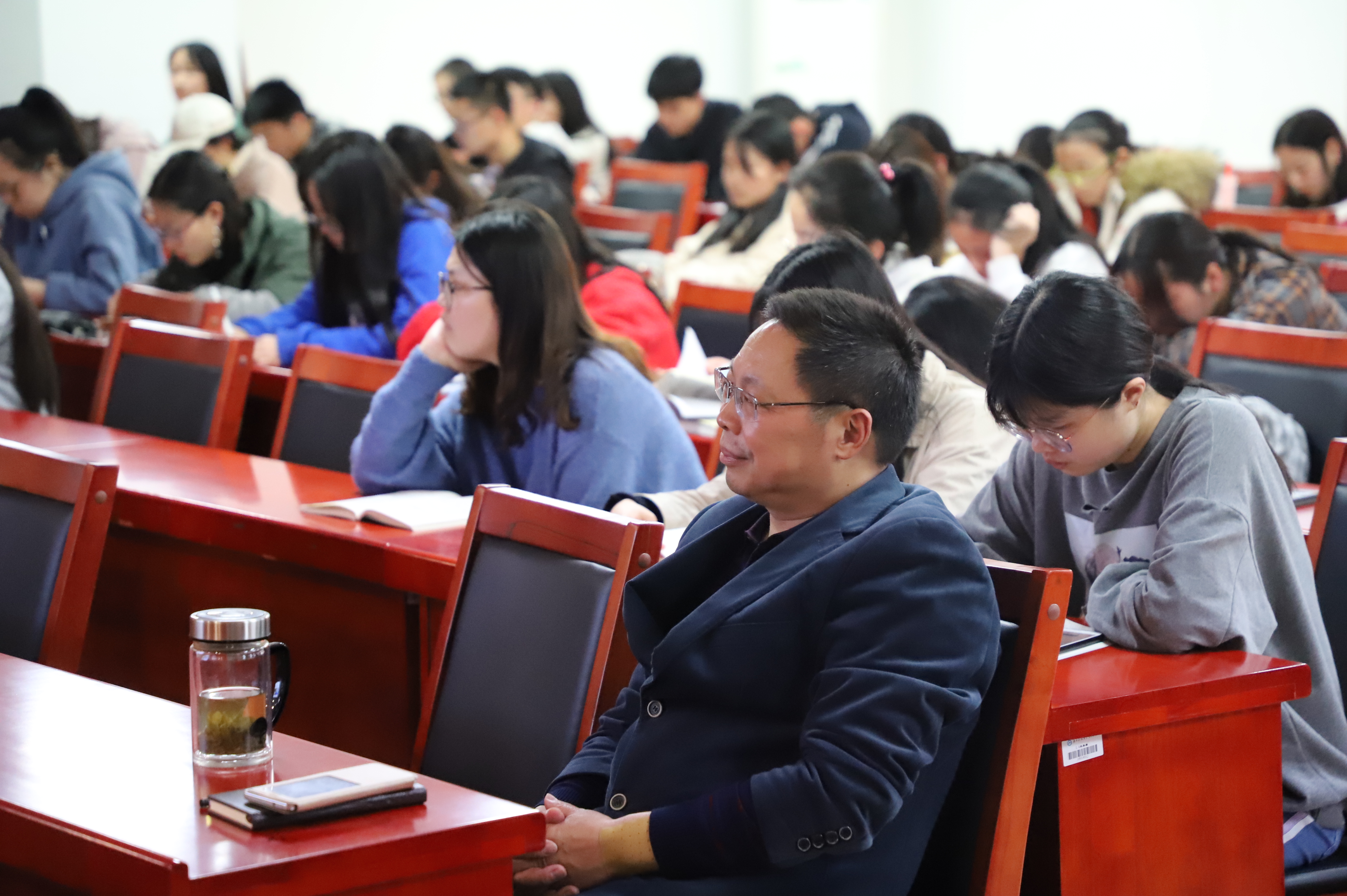 应中欧电竞游戏官网党委邀请,校党委委员、统战部长赵前程教授于4月16日下午在立言楼4-1报告厅为我院教工第五支部的党员老师和学生入党积极分子讲了一堂主题为“增强四个意识、坚定四个自信、做到两个维护”的精彩党课。