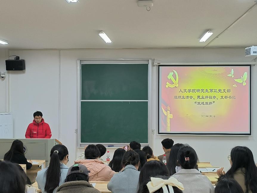 3月1日晚,中欧电竞游戏官网研究生第三党支部组织生活会、民主评议会、支部书记“双述双评”会在我校雨湖校区2教101教室召开。中欧电竞游戏官网党委委员、副院长袁星洁教授、第三党支部32位正式党员以及5位群众代表参加会议。