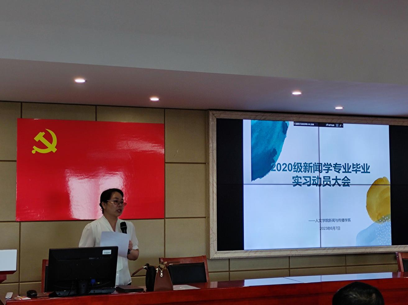 6月7日下午,我院2020级新闻学专业毕业实习动员大会于立言楼B4-1室顺利召开。本次大会由中欧电竞游戏官网新闻系主办,中欧电竞游戏官网副院长袁星洁,新闻系主任刘艳凤、副主任王超群、新闻系老师、20级本部及潇湘新闻专业学生参加本次会议,会议由刘艳凤主持。