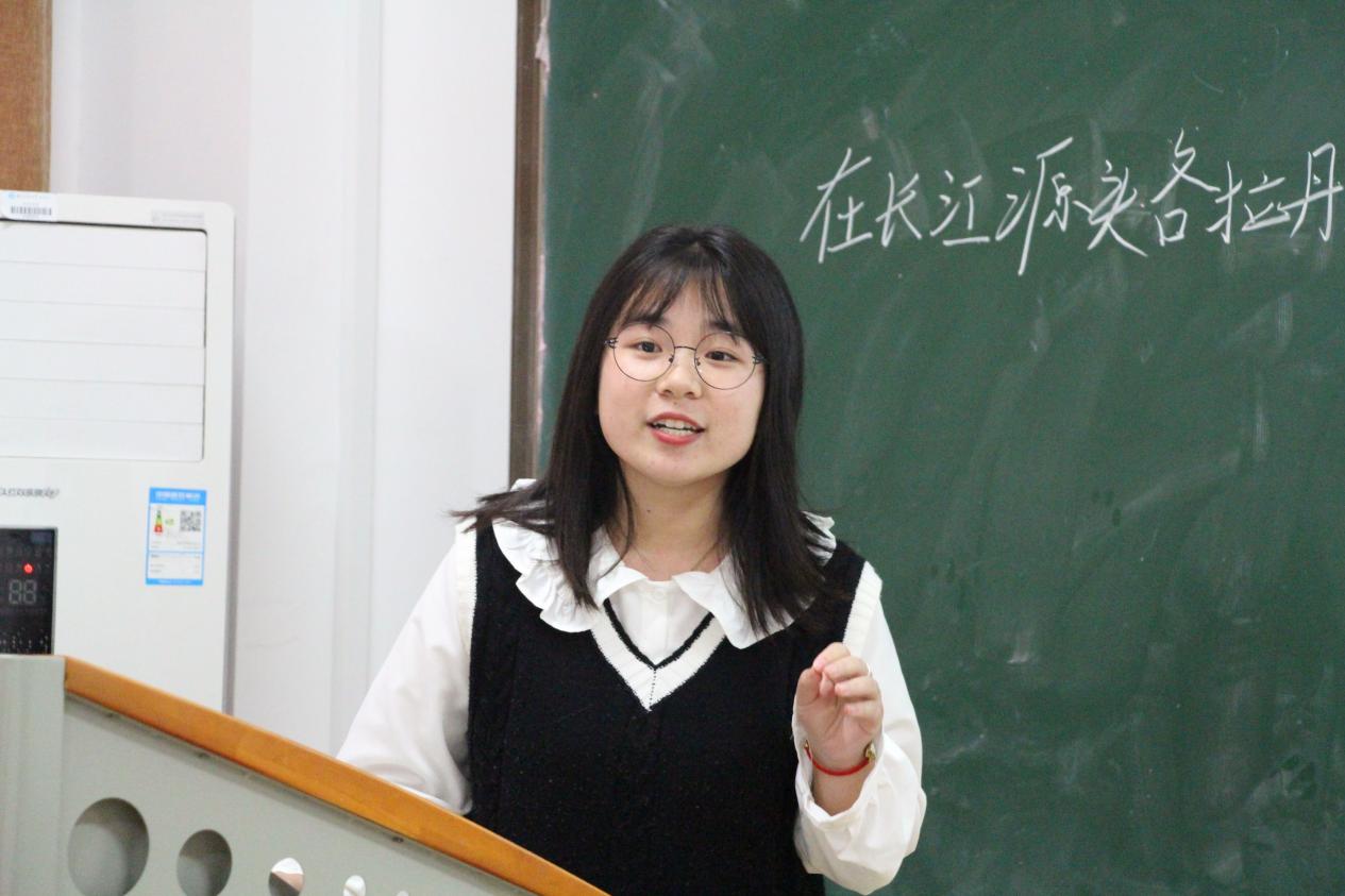 中文组吴婧讲课激情生动,她具体分析了《大雁归来》中大雁的动作及其语言艺术,向观众阐释了利奥波德笔下灵敏的大雁形象。易程元将《小石潭记》娓娓道来,一步一步将观众带进极具“诗意”与“禅意”的小石潭边,自然景象与作者的情感相交融,生动地描绘了遭遇贬谪而困顿失意的柳宗元。杨玉婷就杜甫为何“圣”这一角度提出问题,对《茅屋为秋风所破歌》进行详细讲解,向观众展示了一个“推己及人”“舍身为人”的“诗圣”形象,字里行间说尽杜甫的悲壮与大义。历史组陈意讲课时语调铿锵,情感真挚且饱满,她详细分析了内战爆发背后的因与果,通过对重庆谈判过程的具体讲解,描绘了毛泽东以身试险的伟大领袖形象,展现了毛泽东在民族大义面前的勇气与担当。