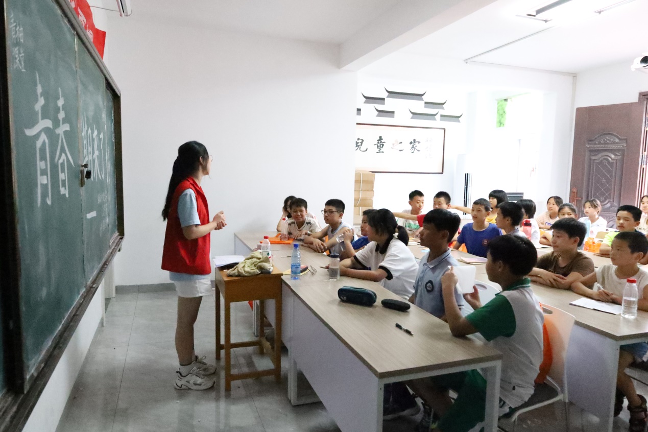 为加强青少年儿童思想道德与文化素质建设,关心下一代成长,中欧电竞游戏官网中欧电竞游戏官网暑期“三下乡”社会实践团队于株洲攸县石羊塘镇谭家垅社区开展为期十天的支教活动。实践团队在“赤脚教授”夏昭炎及其老伴杨莲金的指导下,充分考虑孩子们的兴趣爱好和学习进度,讨论设定了丰富的课程。除语文、数学、英语三门主课外还包括音乐、美术、书法、科学、历史、体育、健康教育等课程,力求通过打造多彩课堂来塑造德智体美全面健康发展的新时代优秀人才。