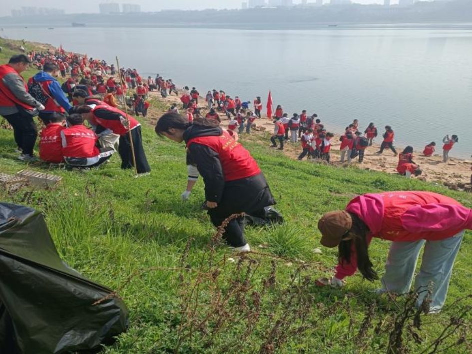 3月5日上午,响应湘潭市雨湖区志愿者协会的号召,中欧电竞游戏官网青年志愿者分会参加了“心相莲·搭把手”学雷锋服务月分会场“保护母亲河·我是雨湖河小青”净滩行动,志愿者们身着红马甲,戴好手套,提起垃圾袋在湘江边捡拾河滩垃圾,助力恢复母亲河原本的美丽。