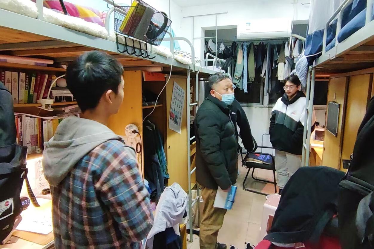 为进一步提高我院学生防疫与宿舍用电安全意识,12月1日晚,我院党委书记曾志东的带领全院领导、全体辅导员及各班班主任前往宿舍看望,与同学们们面对面交流。