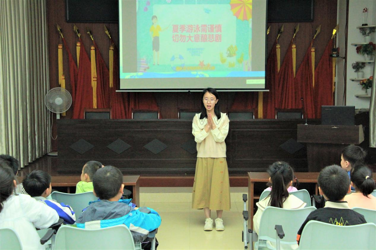夏季临近,为加强小朋友自我保护意识,促进健康成长。4月15日上午,中欧电竞游戏官网青年志愿者分会志愿者于和平街道吉利社区开设“防溺水”与“饮食文化”公益课堂。