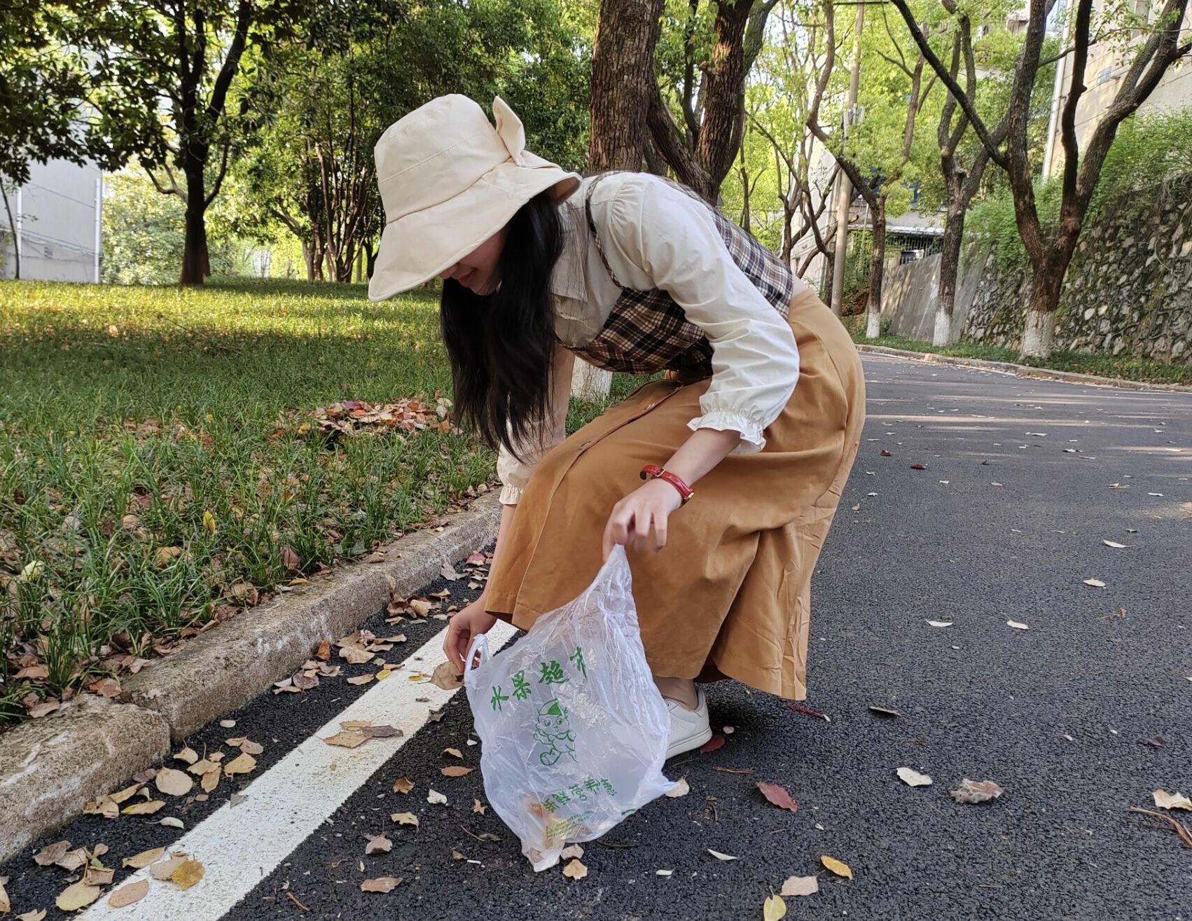当天下午四点半,同学们准时带着扫把、簸箕、垃圾袋等工具到达各班集合点,并迅速前往卫生区域。他们清理地面上的垃圾和路边的纸屑,并轻声提醒游客在欣赏樱花盛开的美景的同时,注意保持卫生。经过一个多小时的努力,各班负责的区域都得以清扫干净,清扫后的垃圾被扔进了附近的垃圾桶。最后,同学们手举院旗,在写有“劳动是一切知识的源泉”的横幅下合影留念,庆祝此次劳动教育户外实践课程圆满完成。