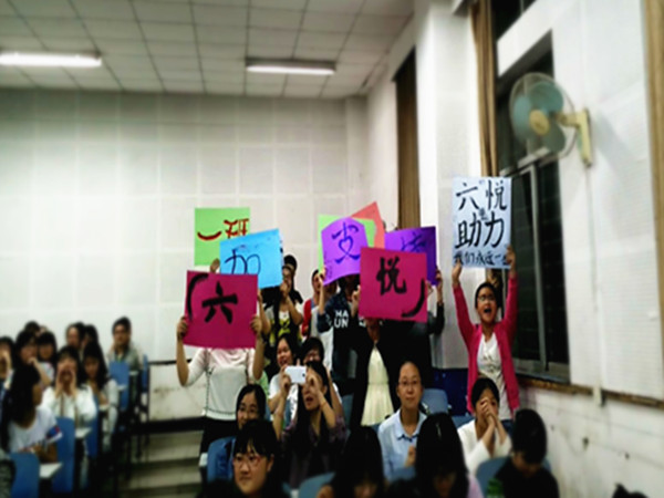 用哲理意味浓厚的佛家用语“六悦”作为班刊名,辅以清新手绘水墨画封面,14级文学一班的班刊让人在炎热夏季生出几丝舒爽凉意。主编康平在闷热的复印店泡了一整天,直到比赛前几个小时才打出几本珍贵的班刊捧过来参加比赛。