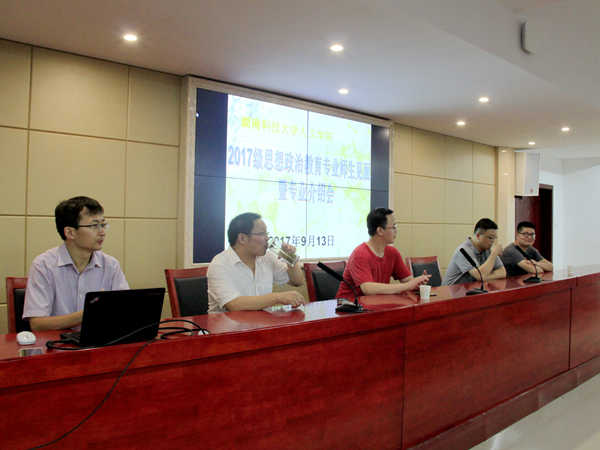为促进师生交流,增进新生对专业的了解及专业自信,9月13日晚,2017思想政治教育专业师生见面会暨专业介绍会在文科楼B4-1教室召开。我院党委书记廖加林,副院长毛小平,颜中军,朱学恩等领导老师教授出席此次会议,思政专业2017级全体新生及新生助理班主任参加。