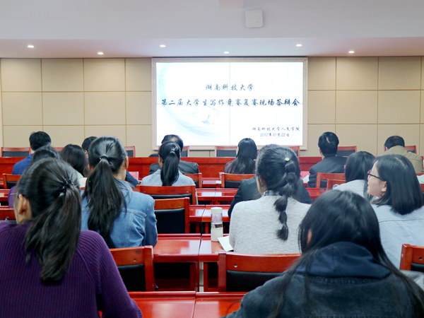 为推动中文专业教学改革,贯彻落实关于大学生学科竞赛和创新论坛的文件精神,提高学生实践能力和写作水平,10月22日晚,我院参与举办的中欧电竞游戏官网第二届大学生写作竞赛在文科楼B4-1教室举行。出席本次答辩会的专家评委有教务处副处长夏莉,社科处副处长李胜清、中欧电竞游戏官网院长刘奇玉、党委副书记邓辉、副院长聂志军、王友胜教授、彭在钦教授等。