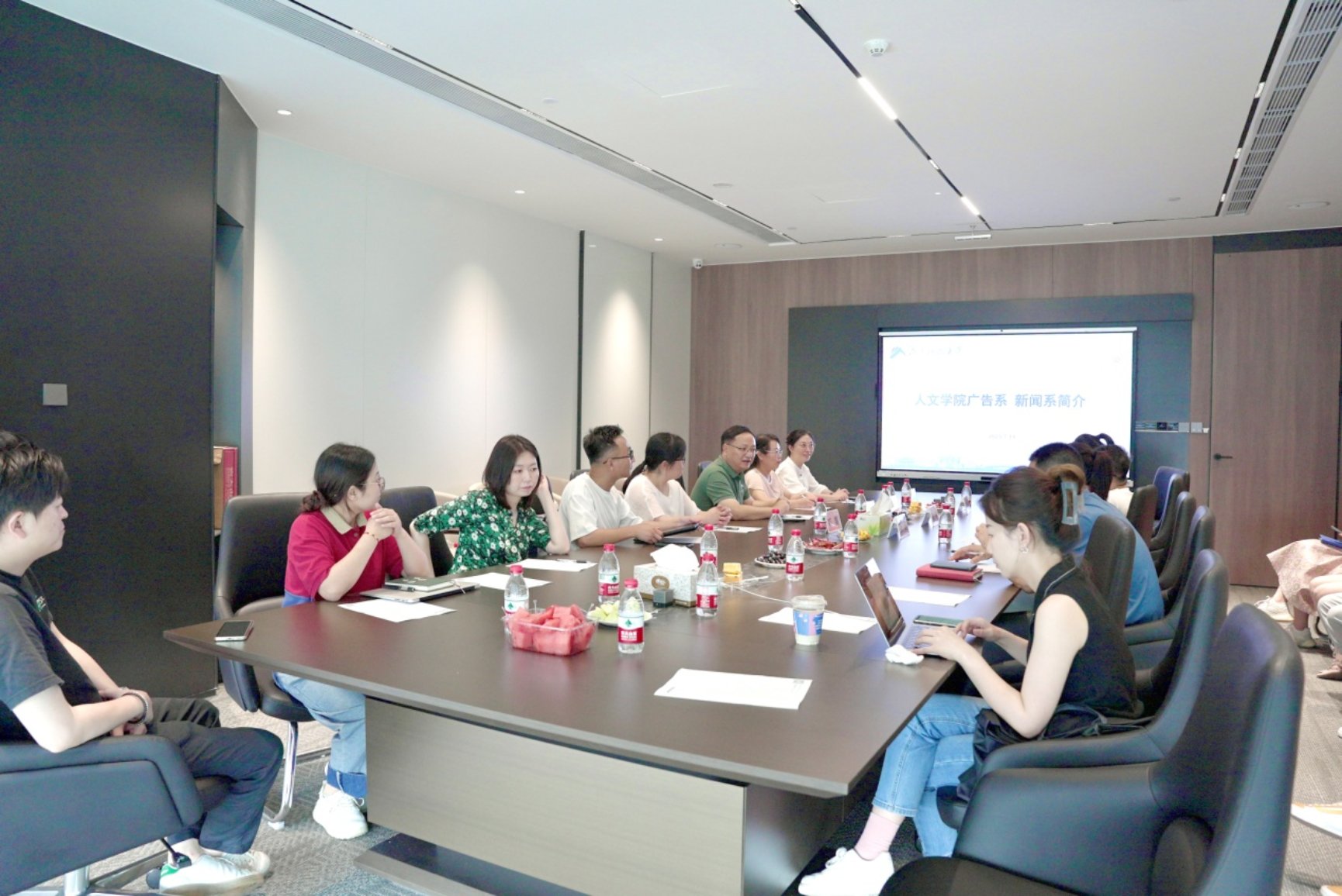7月14日,中欧电竞游戏官网副院长袁星洁教授、广告系主任曹佳骊副教授、郭娟老师、新闻系主任刘艳凤副教授等一行赴长沙马栏山视频文创产业园,就视频文创产业发展趋势、校企产学研合作、人才孵化基地建设及用人单位对人才培养的素质要求等进行调研考察。