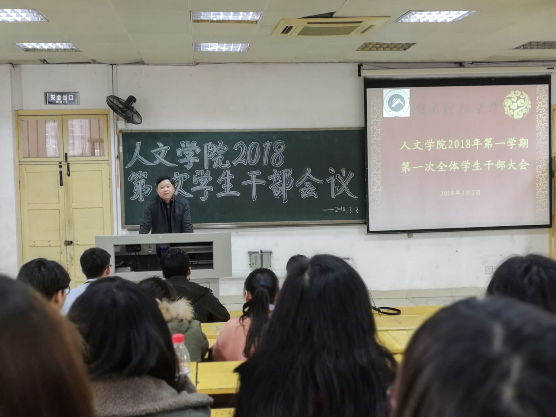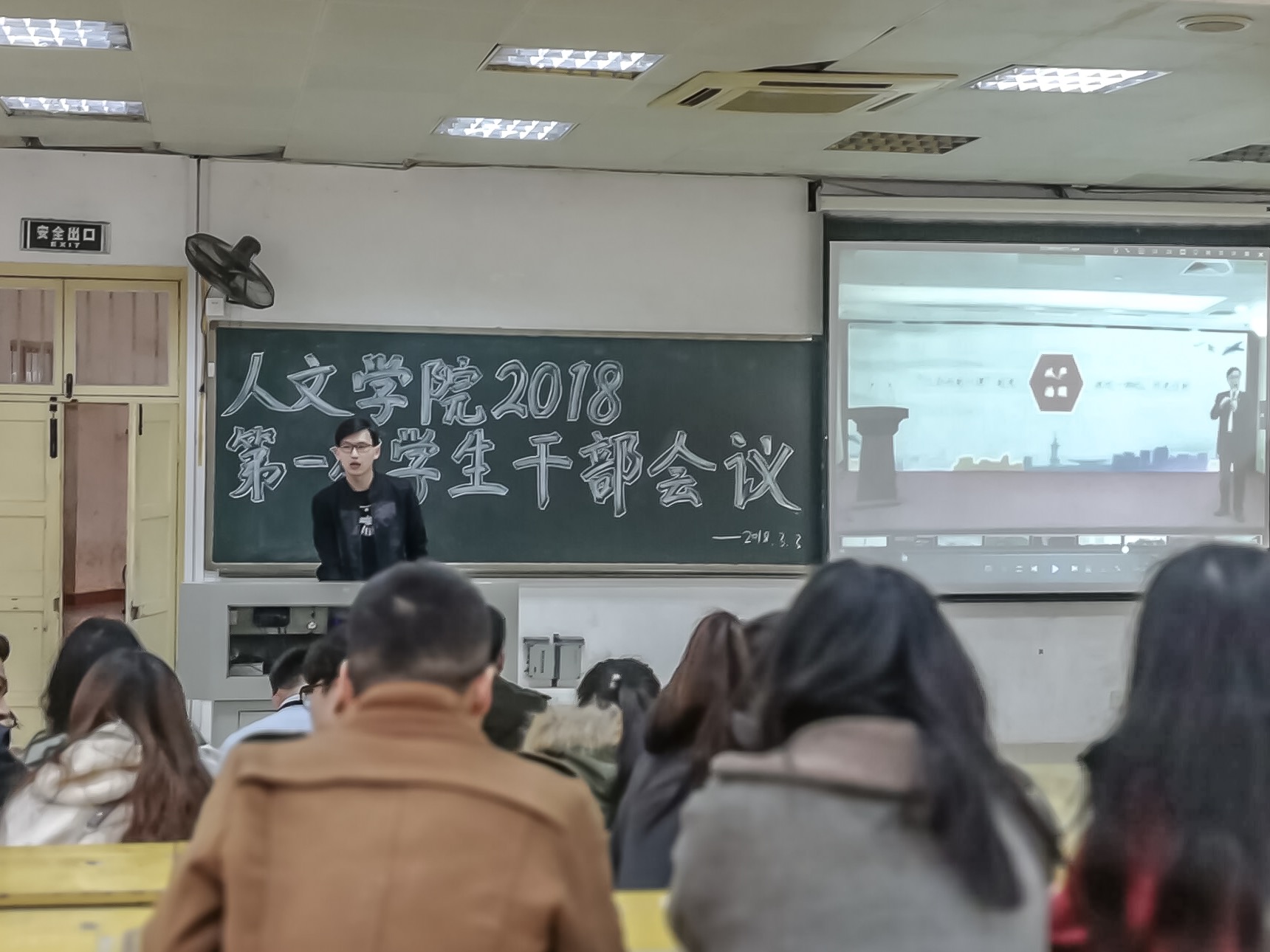 为迎接新学期的到来,推进学院学生管理工作的有序开展。3月3日下午,我院于十教附一102教室召开了2018年度第一学期第一次全体学生干部会议。我院党委副书记邓辉、学工办主任马忠石、学工办老师曾思妍等参加并主持了此次会议,我院团委学生会及各班级全体学生干部到场聆听并集中收看2018年度学校共青团网络视频。