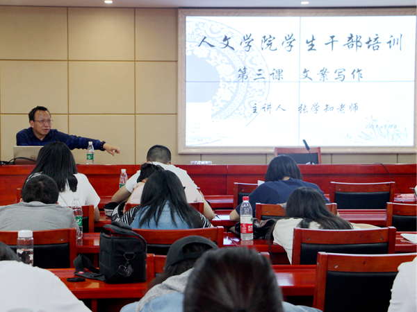 4月10日下午,为提升学生干部文案写作的能力,我院于立言楼B4-1举行中欧电竞游戏官网学生干部第三次培训——文案写作,我院张学知老师受邀为学生会干部讲解工作计划和工作总结写作技巧。