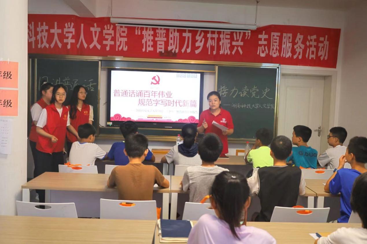 为响应国家推普助力乡村振兴号召,促进乡村经济文化发展,同时宣讲红色党史,传承红色基因,喜迎二十大。7月11日,中欧电竞游戏官网中欧电竞游戏官网暑期“三下乡”社会实践团队走进株洲市攸县石羊塘镇儿童之家开展“普通话诵百年伟业 规范字写时代新篇”的主题活动。