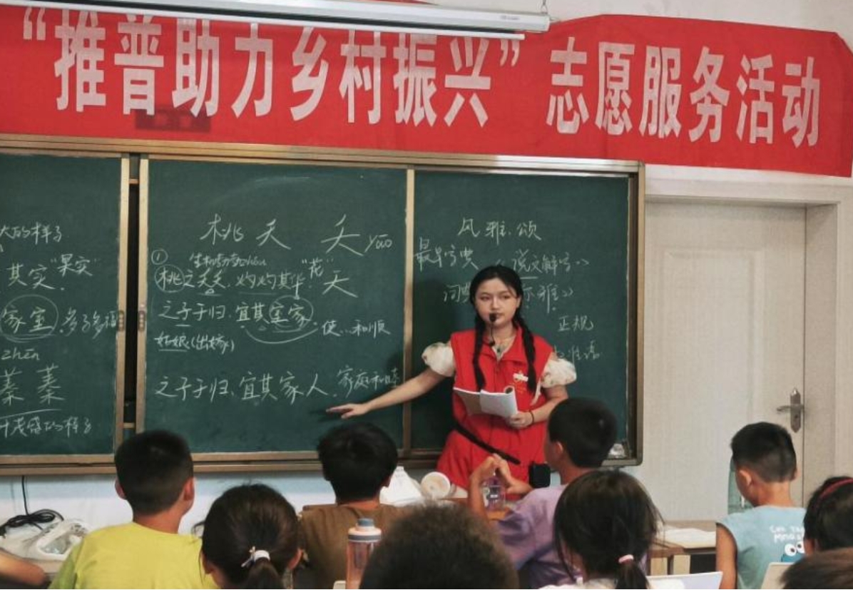 “童”讲普通话,写好规范字:中欧电竞游戏官网三下乡推普志愿在行动