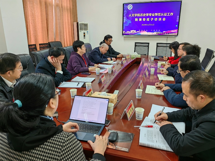 为进一步推动历史学专业建设与发展,提升人才培养质量,我院历史学专业于2024年11月19日至22日接受教育部高等教育教学评估中心的师范类专业第二级认证现场考查。考查工作专家组由渤海大学历史师范学院院长刘芳教授担任组长,嘉兴大学教授丁连生、云南师范大学附属中学正高级教师杨远贵、延安大学教授杜林渊、井冈山大学教授昌庆钟和广东技术师范大学副研究员柏晶等六人组成。