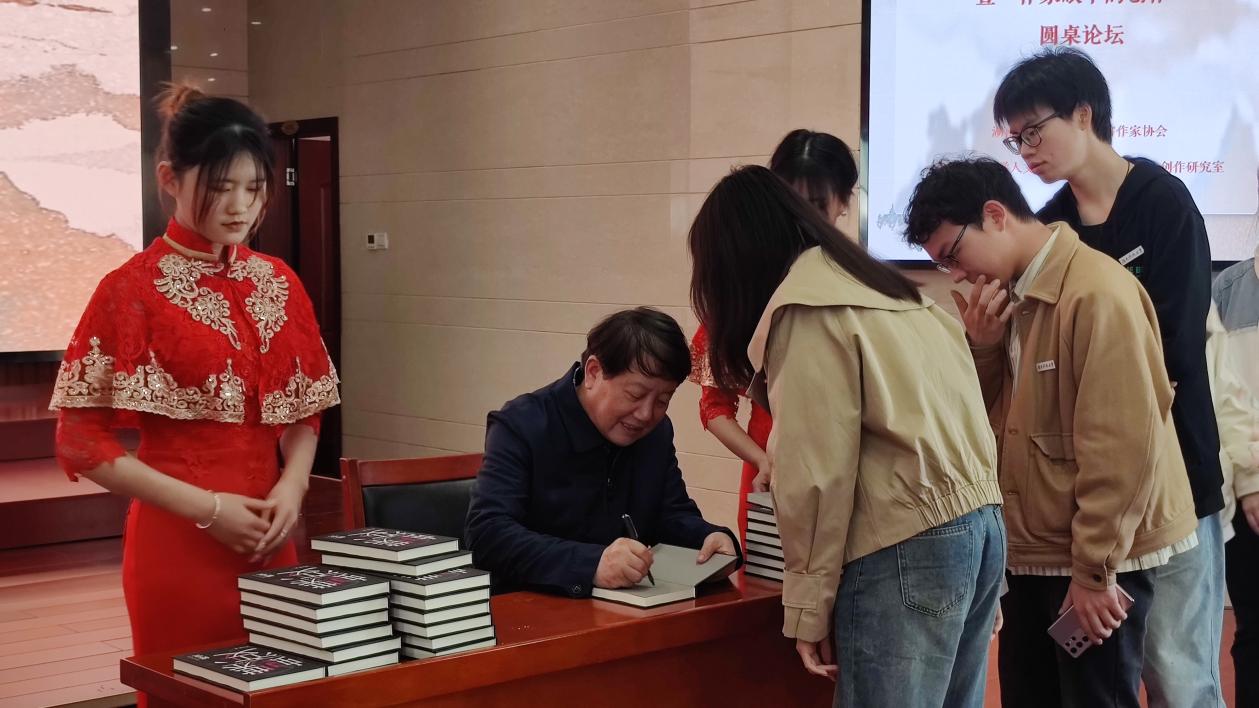 “月湖”创作班的学员康山林同学表示:“听了作家老师们眼中的创作圆桌论坛,我感受最深的便是‘生活’二字。在今后的学习、生活中,我也会对生活更加关注、更加热爱,向老师们学习。”活动最后,各位作家在自己的原创书上签名,将它们赠予“月湖”创作班的所有学员,面对面向学员们传达殷切祝福与期待。