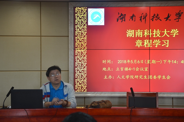 5月7日下午,我院于立言楼4—1会议室组织研究生集体学习《中欧电竞游戏官网章程》。研究生辅导员成伟明老师担任主讲人,全体研究生参加学习。