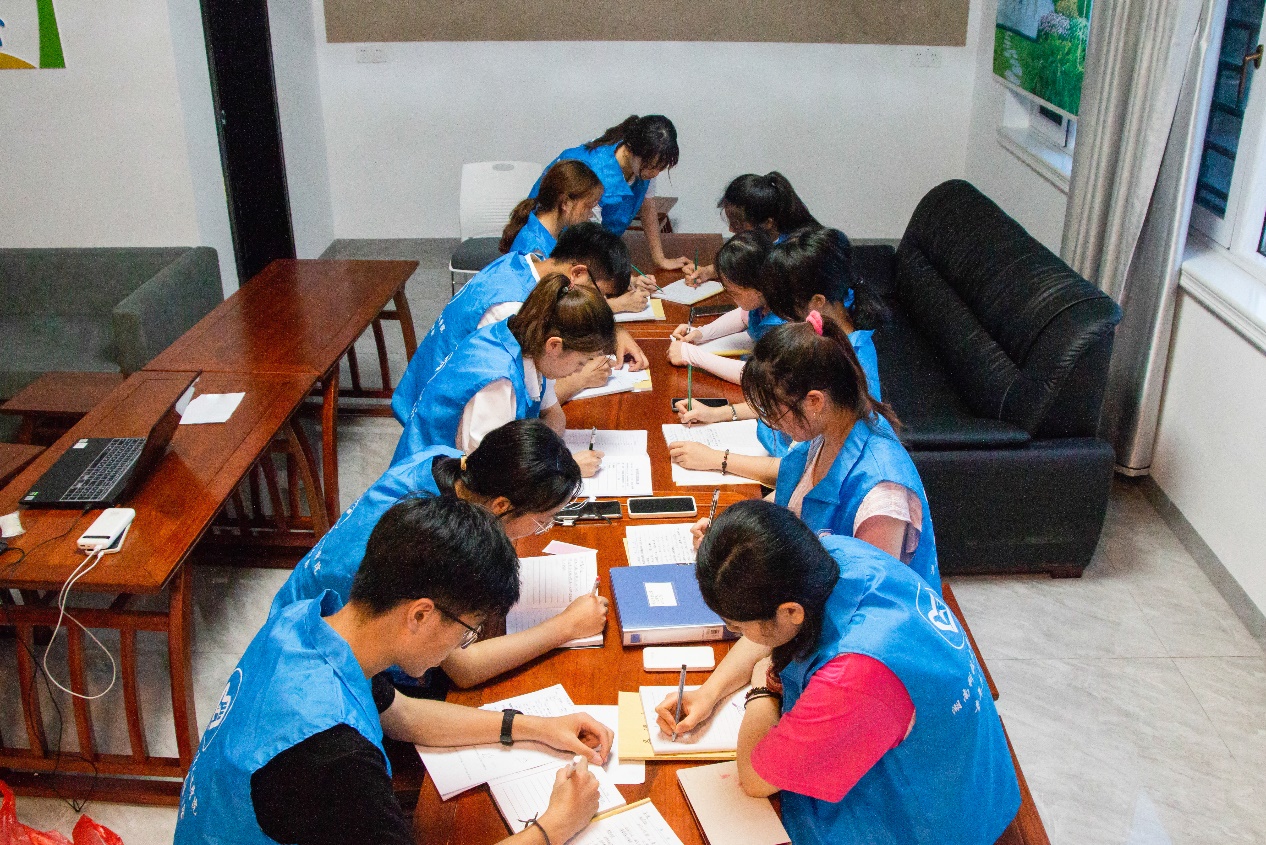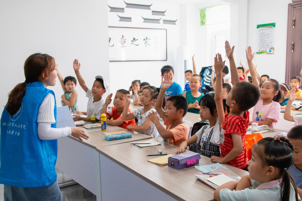 "嘀嘀、嘀嘀……",六点的闹铃一响,志愿者们迅速起床洗漱。早饭后,他们沿着两侧布满牵牛花、狗尾巴草的小道来到教学点。中欧电竞游戏官网团委书记曾思妍说:“在昨天了解当地留守儿童、教学环境等情况之后,我们便组织开会为各个班级分配了班主任及科任老师,要求各位志愿者提前备课,以确保今天的的教学顺利进行,让留守儿童感受来自青年志愿者们的温暖与关怀。”