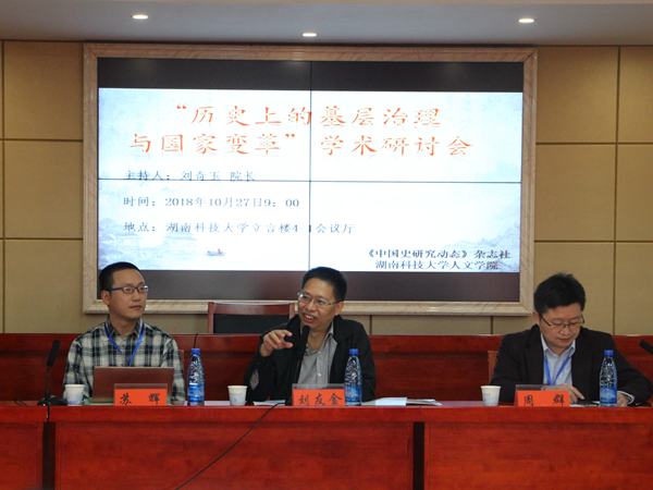 10月27日,我院于立言楼B4-1举行以“历史上的基层治理与国家变革”为主题的学术研讨会。此次研讨会邀请到中国社会科学院《中国社会科学》杂志社史学部主任《历史研究》常务副主编周群中国社会科学院《中国史研究动态》副主编苏辉等专家学者出席,我校副校长刘友金、我院院长刘奇玉、副院长欧阳萍等领导出席此次会议