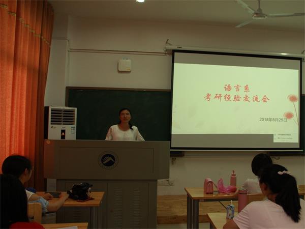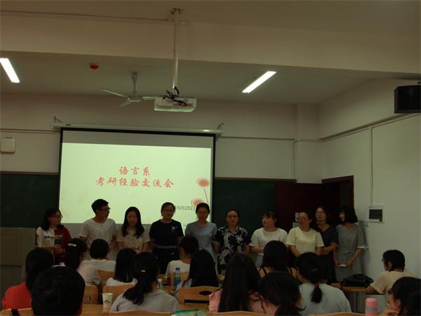 随后,秦凤鹤老师上台总结了14级汉语言专业考研情况,并向大家分享了自己2009年考研的经历和经验。她指出,考研是个艰辛的过程,不仅要向别人多“取经”,而且在努力的同时照顾好身体、养好身体也是关键。而曾春蓉老师则对交流会上大家分享的经验进行总结,她根据自己的亲身经历,指出每个人都有自己的备考方法,但是只有适合自己的方法才是最好的,同时也为2019年即将考研的同学送上了期望和祝福。