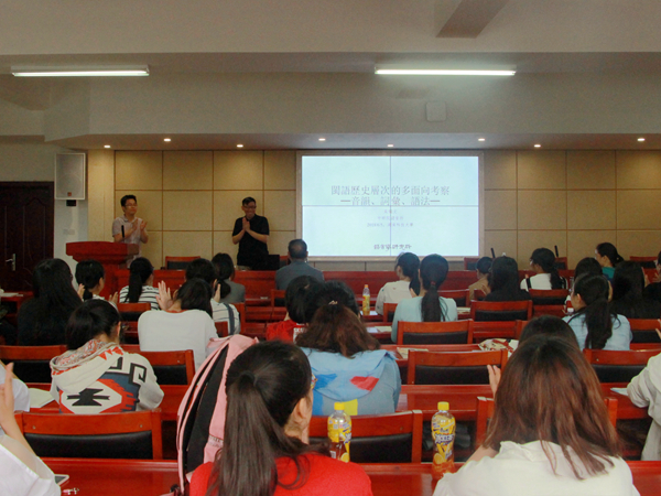 随后,吴瑞文教授讲述了有关原始闽语中效摄洪音字的音韵层次和时代问题。“特效洪音字在各闽语方言中分别有两个属于白话音的音韵层次,”就这一观点,他从豪韵和肴韵的两个音韵层次,以“臊”、“樵”等字为例论进行论证。并探讨了有关音韵层次和语法成分的关系。最后他总结了汉语方言层次研究的多方面意义,认为语言层次的研究同时具有音韵、词汇及语法三种方面的意义,十分具有研究价值。