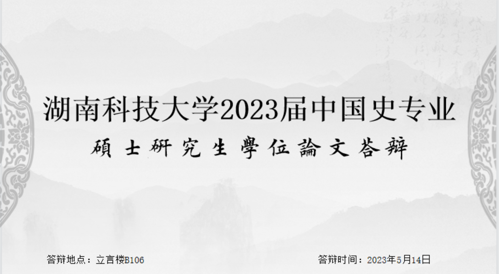 5月14日,中欧电竞游戏官网2020级中国史专业硕士研究生学位论文答辩于立言楼B106如期举行。本次答辩邀请湘潭大学章育良教授担任答辩主席,湘潭大学吉成名教授以及我院徐红教授、金身佳教授、周方高教授、聂志军教授担任答辩委员。2020级中国古代史方向8位硕士研究生参与此次答辩。